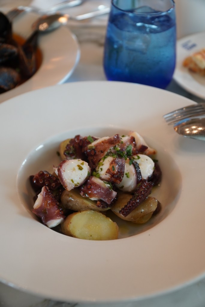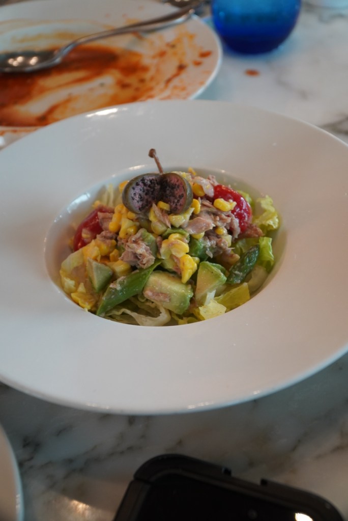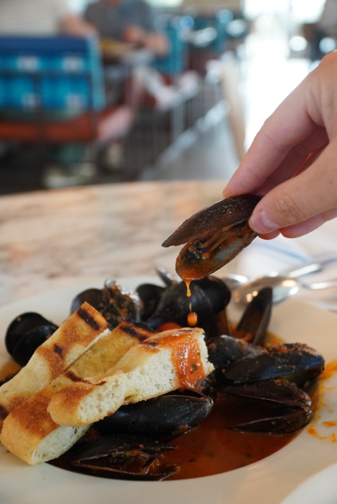 Have you had a cold soup recently? One of the best soups I’ve had is in the menu here, CREMA DI POMODORO PICCANTE: Chilled tomato, cucumber, celery, red pepper, basil, parsley, red onion, cantaloupe, croutons. You can’t go wrong with the hot soup either, I can actually confidently say you won’t go wrong no matter what you chose at Simply Capri. Our appetizers were also amazing but if we had to pick one, we would pick the mussels every single time, truly delicious, as you can see from the salad images we liked the plate clean.